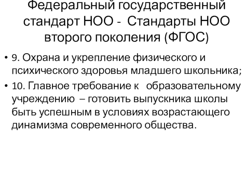 Слайд 10Федеральный государственный стандарт НОО - Стандарты НОО второго поколения (ФГОС)