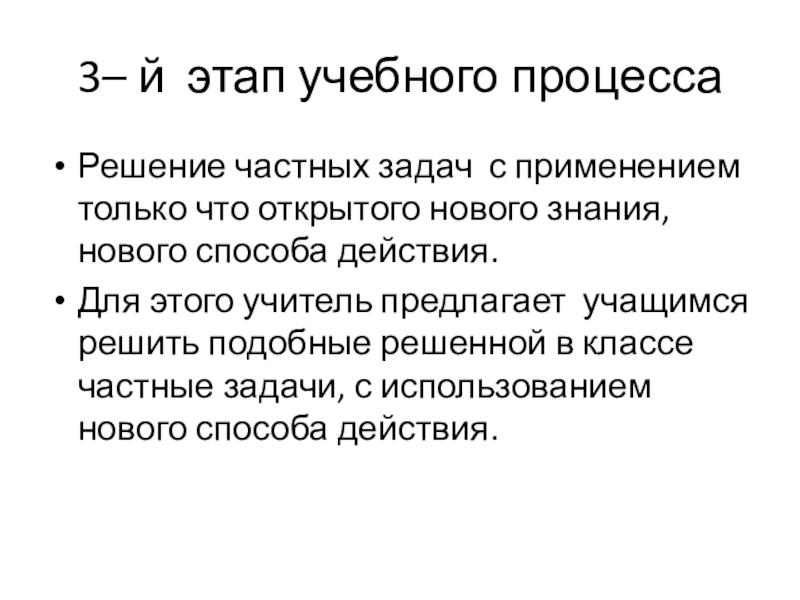 Для этого учитель предлагает учащимся решить подобные решенной в классе частные задачи, с использованием нового способа действия.
