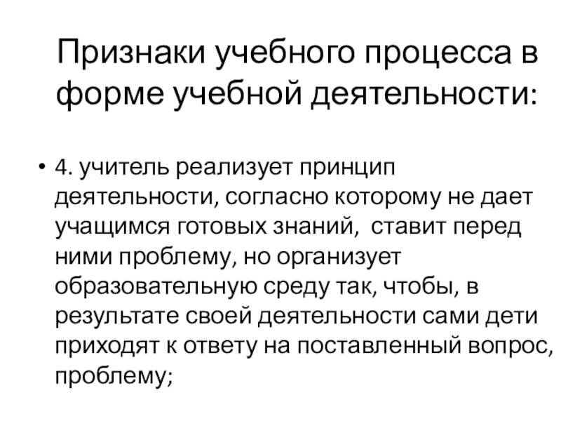 3. Учебный процесс должен быть организован в форме учебной деятельности;