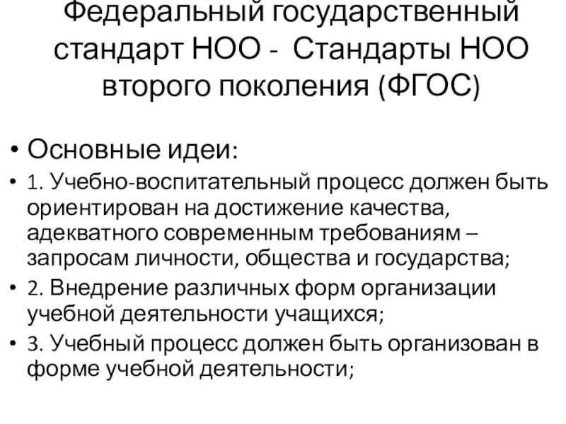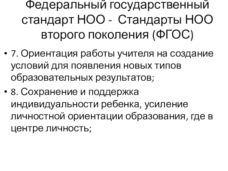 Слайд 8Федеральный государственный стандарт НОО - Стандарты НОО второго поколения (ФГОС)