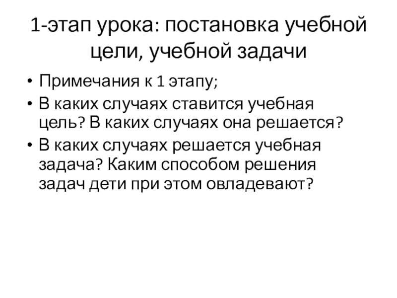 Слайд 181-этап урока: постановка учебной цели, учебной задачи