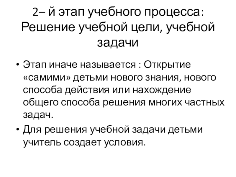 Слайд 192– й этап учебного процесса: Решение учебной цели, учебной задачи