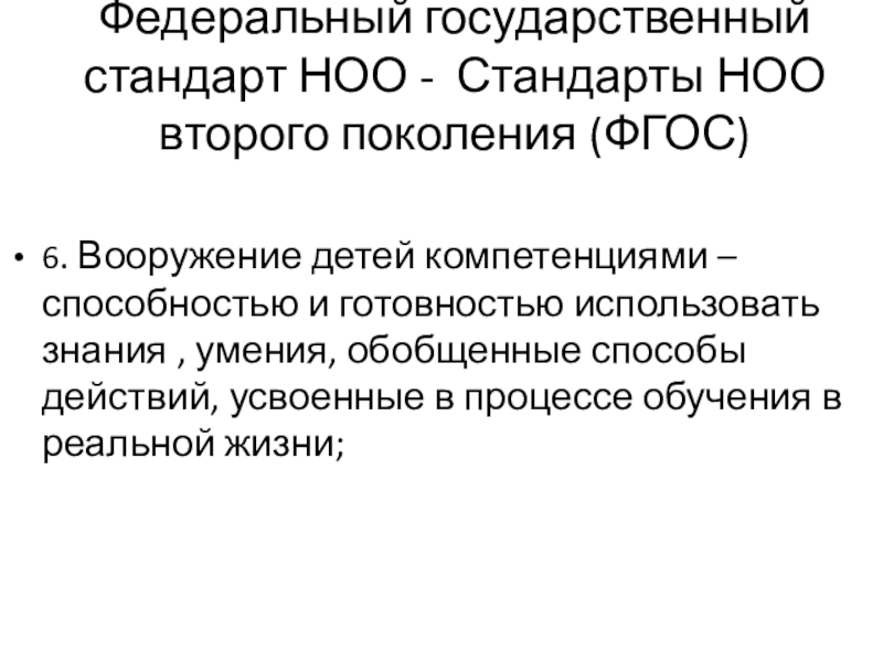 Слайд 6Федеральный государственный стандарт НОО - Стандарты НОО второго поколения (ФГОС)