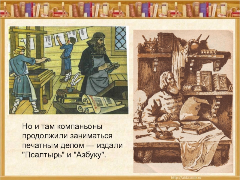 Слайд 27Но и там компаньоны продолжили заниматься печатным делом — издали "Псалтырь"