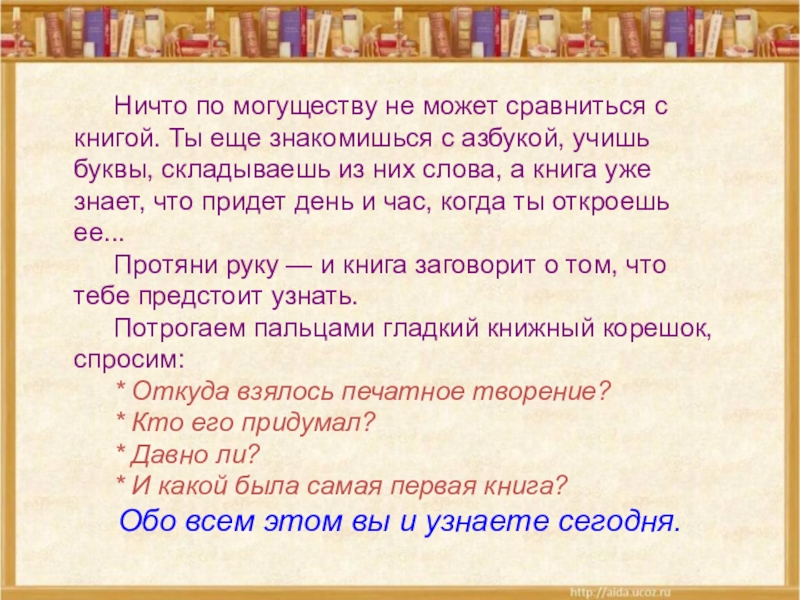Слайд 4 Ничто по могуществу не может сравниться с книгой. Ты еще знакомишься