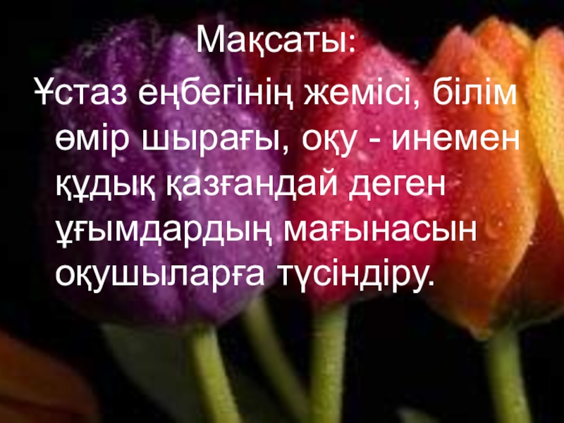Мақсаты: Ұстаз еңбегінің жемісі, білім өмір шырағы,
