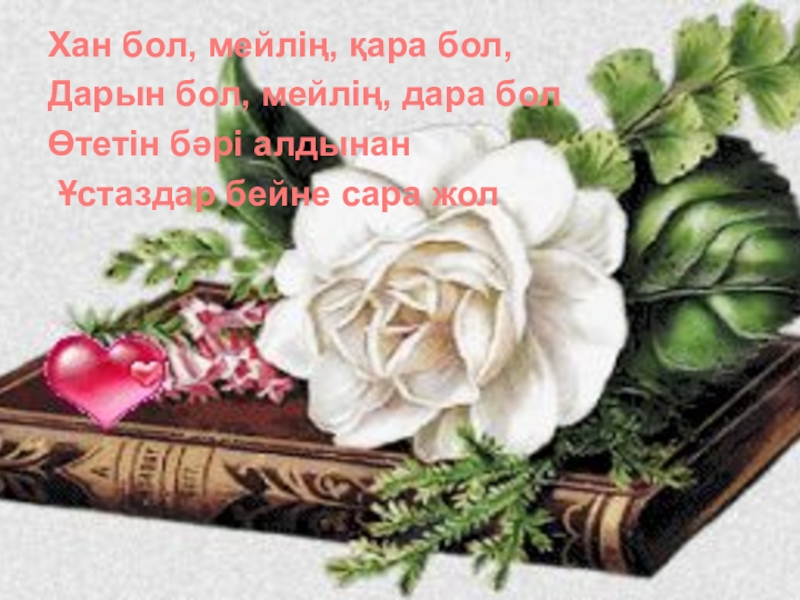 Хан бол, мейлің, қара бол, Дарын бол, мейлің, дара бол Өтетін бәрі алдынан Ұстаздар бейне сара жол