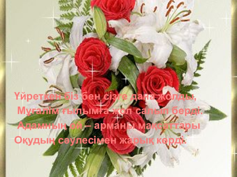 Үйреткен біз бен сізге дана жолды, Мұғалім ғылымға жол салып берді. Адамның ой – арманы мақсаттары Оқудың