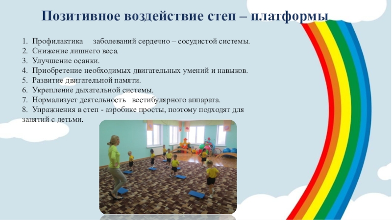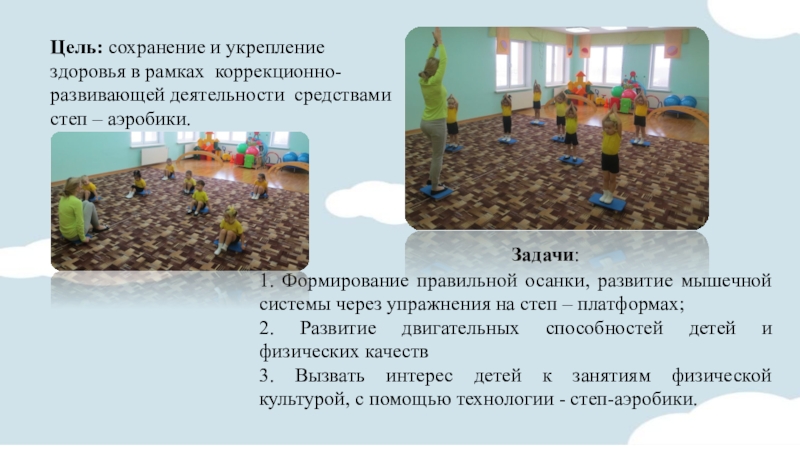 3. Вызвать интерес детей к занятиям физической культурой, с помощью технологии - степ-аэробики.