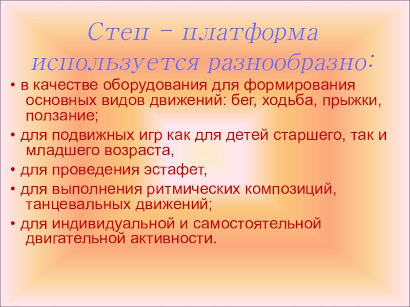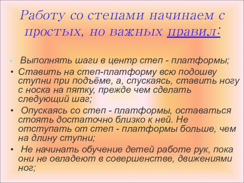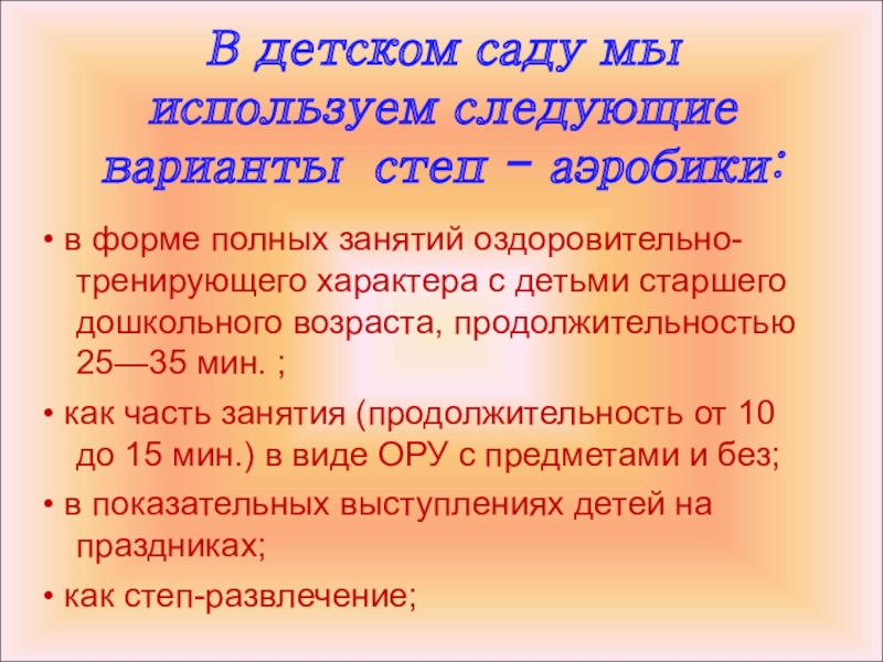В детском саду мы используем следующие варианты степ - аэробики: