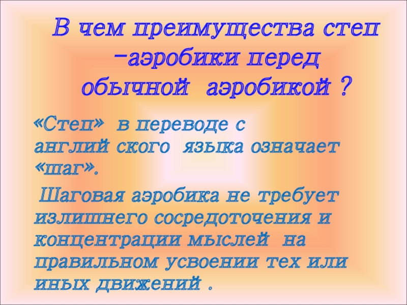 На занятиях по степ - аэробике решаются следующие задачи: