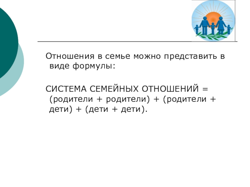 Слайд 5 Отношения в семье можно представить в виде формулы: