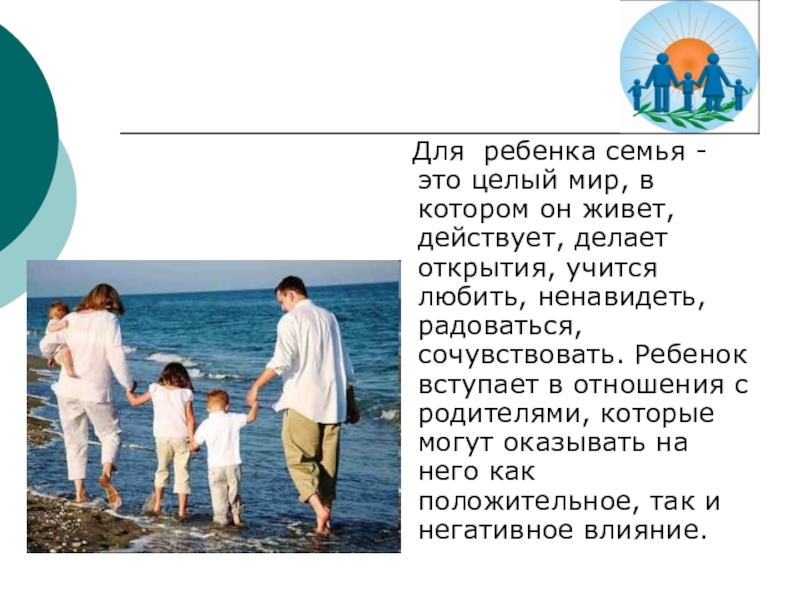 Слайд 3 Для ребенка семья - это целый мир, в котором