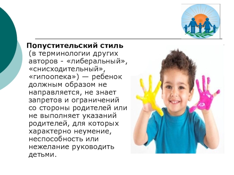 Слайд 9 Попустительский стиль (в терминологии других авторов - «либеральный», «снисходительный»,