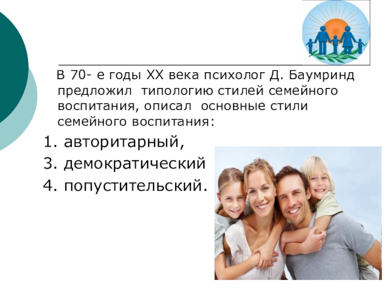 предложил типологию стилей семейного воспитания, описал основные стили семейного воспитания: