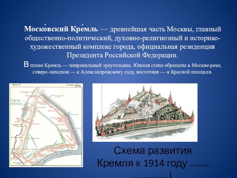 Схема развития Кремля к 1914 году (из Военной энциклопедии Сытина)