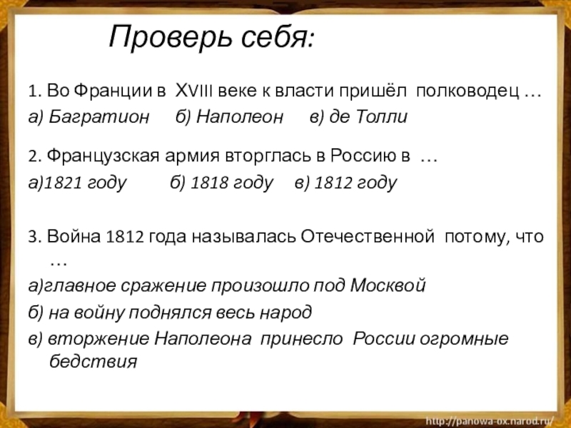 3. Война 1812 года называлась Отечественной потому, что …