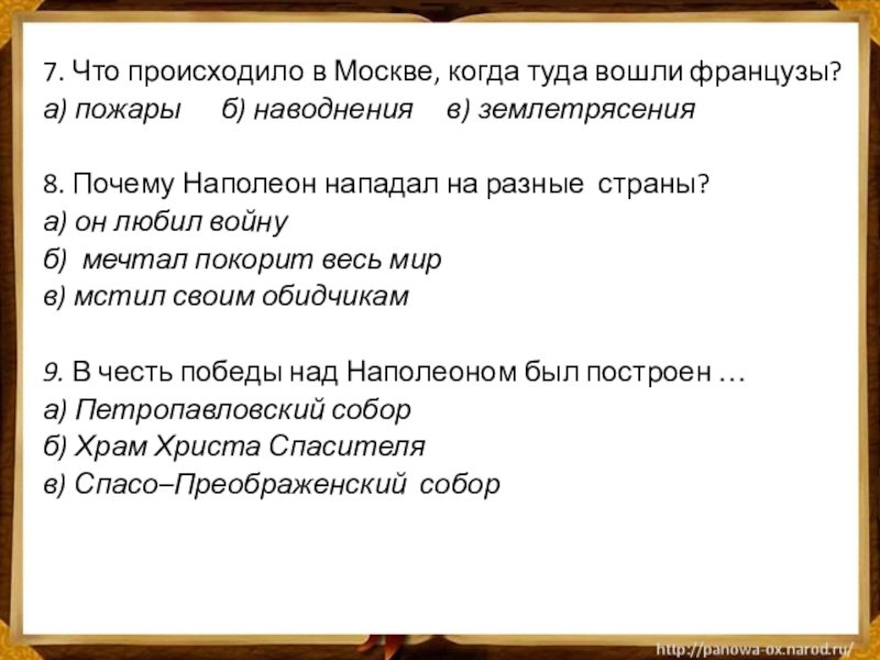 Слайд 77. Что происходило в Москве, когда туда вошли французы?