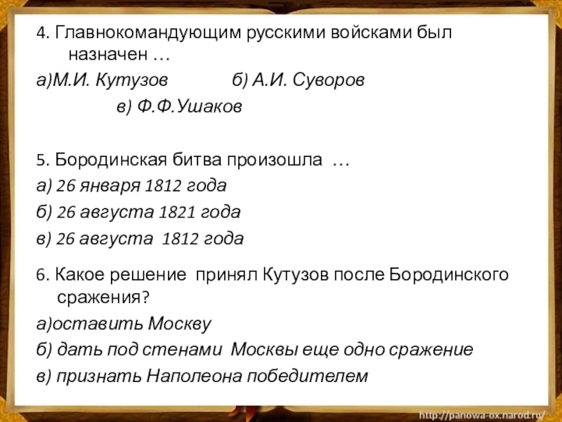 6. Какое решение принял Кутузов после Бородинского сражения?