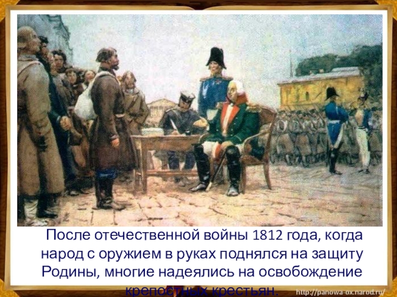 Слайд 10 После отечественной войны 1812 года, когда народ с оружием в руках