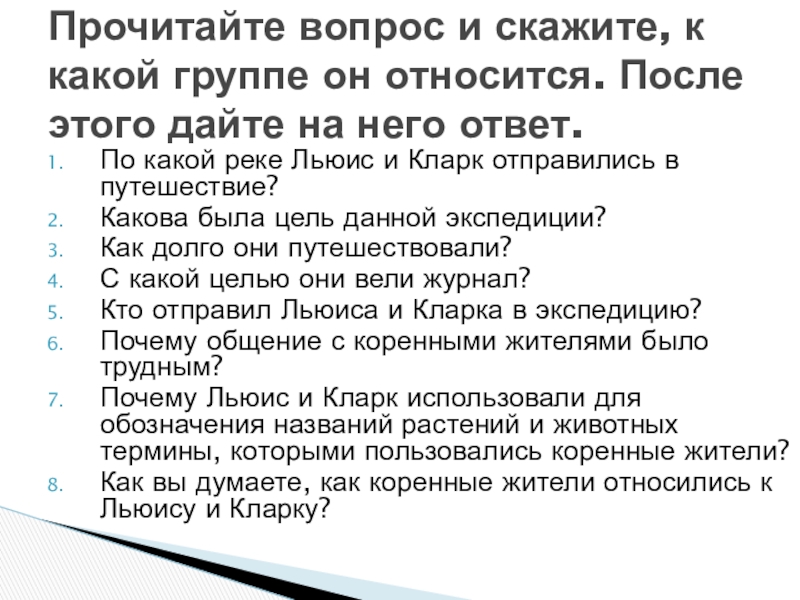 Прочитайте вопрос и скажите, к какой группе он относится. После этого дайте на него ответ.