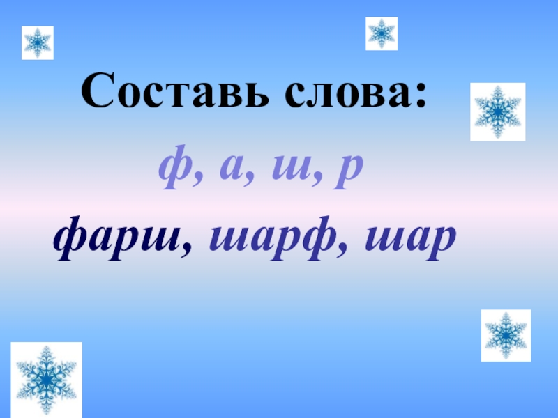 Составь слова: ф, а, ш, рфарш, шарф, шар