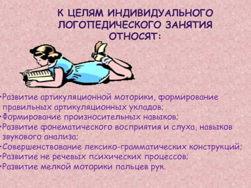 К целям индивидуального логопедического занятия относят: