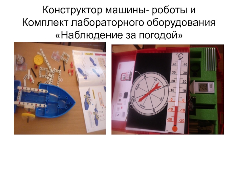 Слайд 6Конструктор машины- роботы и Комплект лабораторного оборудования «Наблюдение за погодой»