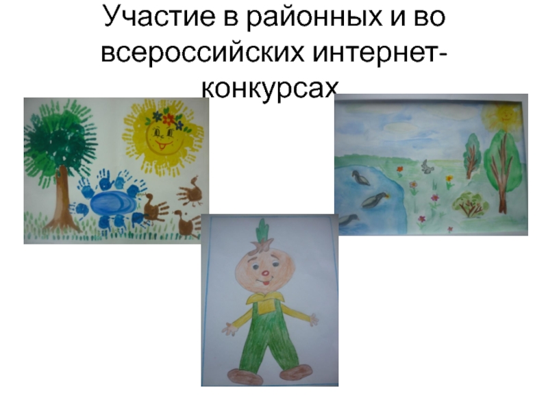 Слайд 13Участие в районных и во всероссийских интернет-конкурсах.