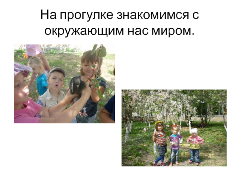 Слайд 7На прогулке знакомимся с окружающим нас миром.