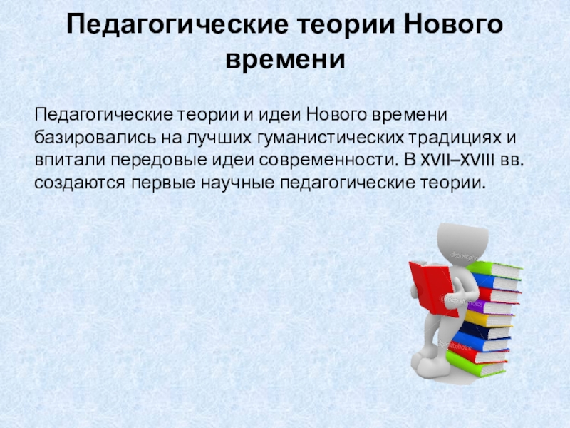лучших гуманистических традициях и впитали передовые идеи современности. В XVII–XVIII вв. создаются первые научные педагогические теории.