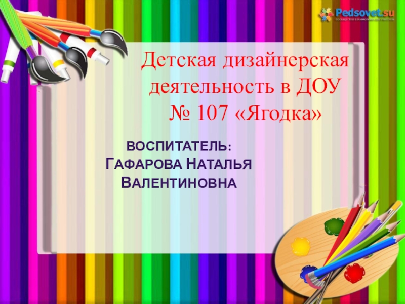 Детская дизайнерская деятельность в ДОУ № 107 «Ягодка»Воспитатель:Гафарова наталья валентиновна