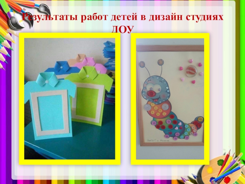 Слайд 10Результаты работ детей в дизайн студиях ДОУ