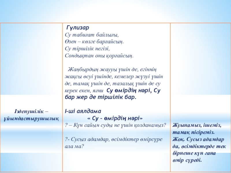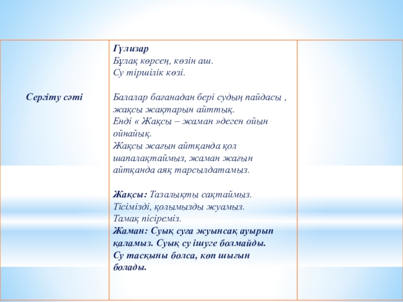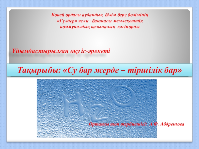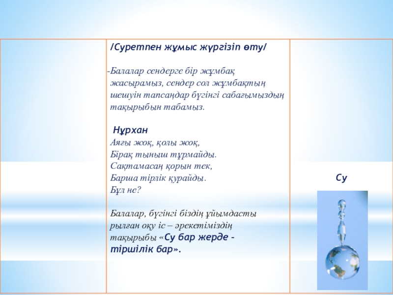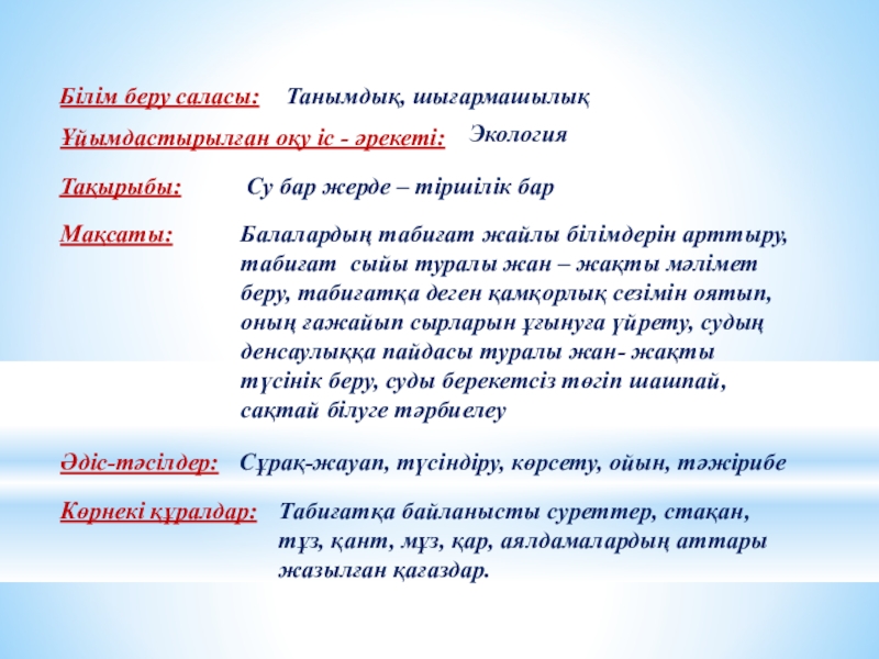 Тақырыбы: «Су бар жерде – тіршілік бар»