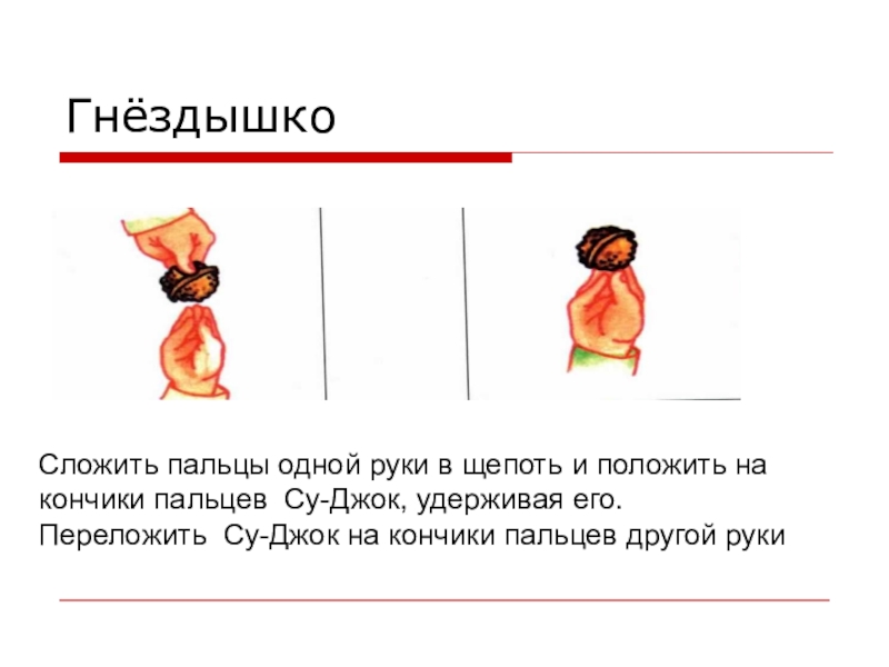 Одна рука лежит ладонью вверх. Н Су-Джок а ней Су-Джок. Другая