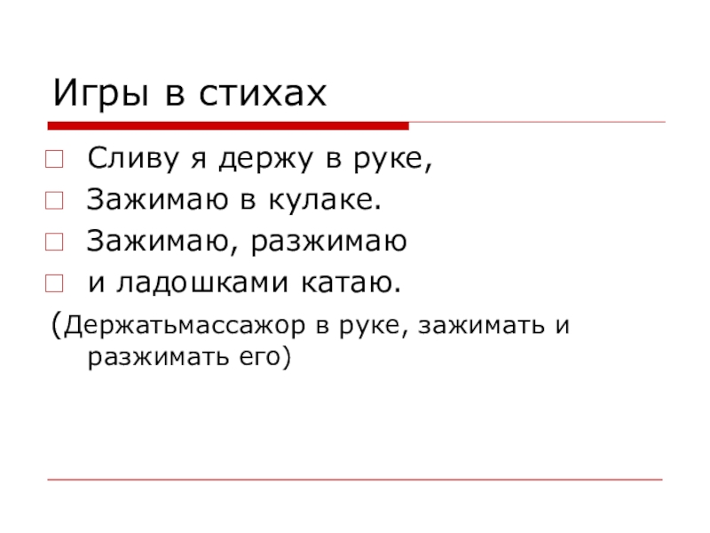 (Держатьмассажор в руке, зажимать и разжимать его)