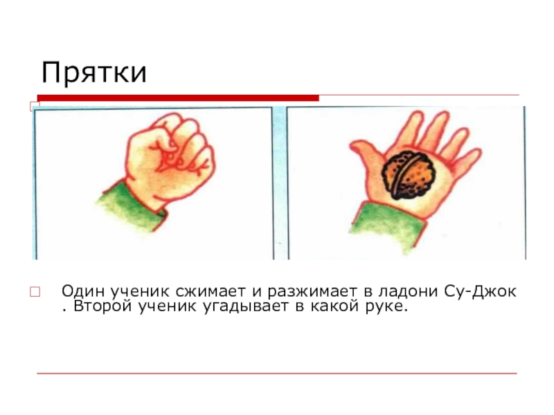 Один ученик сжимает и разжимает в ладони Су-Джок . Второй