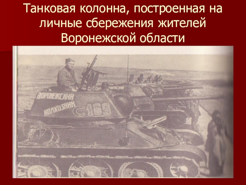 Слайд 18Танковая колонна, построенная на личные сбережения жителей Воронежской области