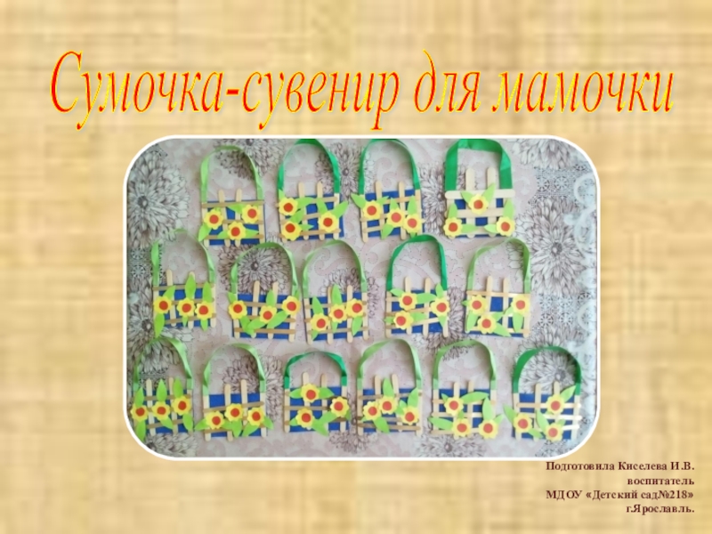 Сумочка-сувенир для мамочки Подготовила Киселева И.В.воспитатель МДОУ «Детский сад№218»г.Ярославль.
