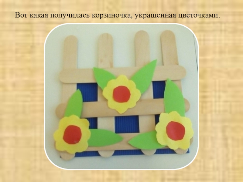 Слайд 6Вот какая получилась корзиночка, украшенная цветочками.
