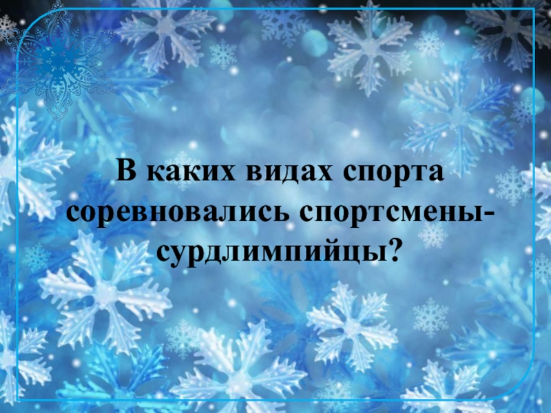 Слайд 27В каких видах спорта соревновались спортсмены-сурдлимпийцы?