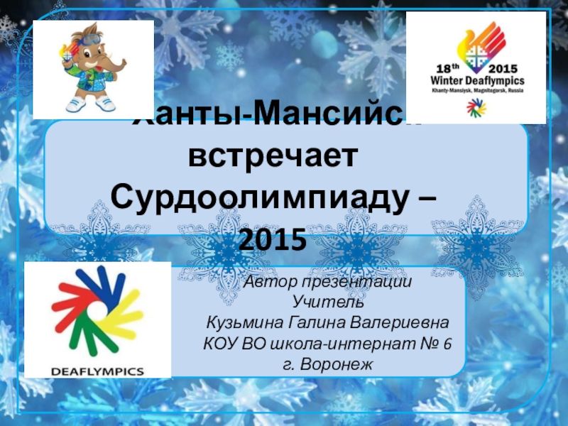 Ханты-Мансийск встречает Сурдоолимпиаду – 2015 Автор презентацииУчительКузьмина Галина Валериевна