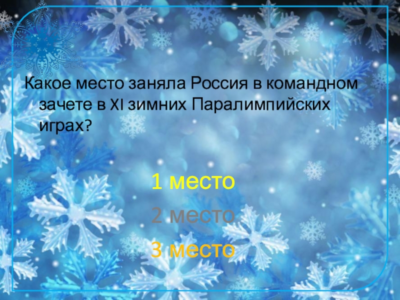Слайд 13Какое место заняла Россия в командном зачете в XI зимних Паралимпийских