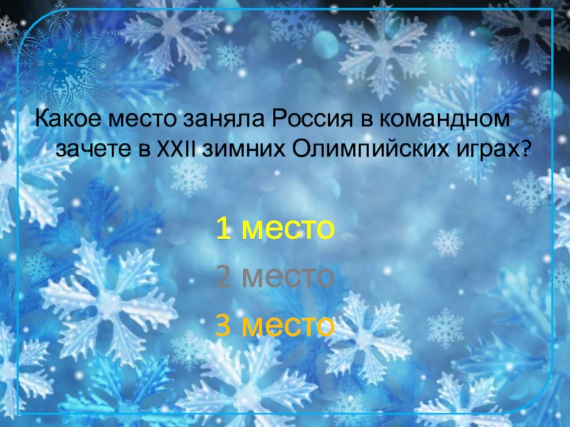 Слайд 7Какое место заняла Россия в командном зачете в XXII зимних Олимпийских