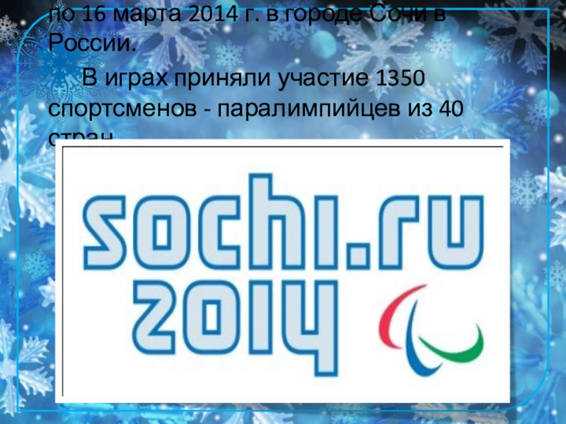 XI Паралимпийские игры прошли с 7 по 16 марта 2014 г. в городе Сочи