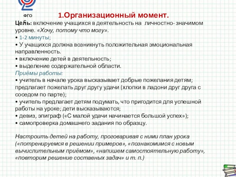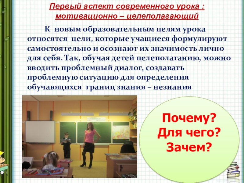 Первый аспект современного урока : мотивационно – целеполагающий