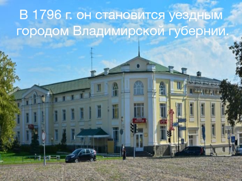 Слайд 7В 1796 г. он становится уездным городом Владимирской губернии.