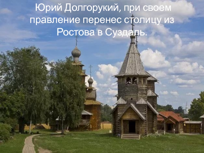 Слайд 6 Юрий Долгорукий, при своем правление перенес столицу из Ростова в Суздаль.
