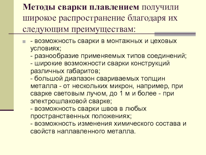 Методы сварки плавлением получили широкое распространение благодаря их следующим преимуществам: