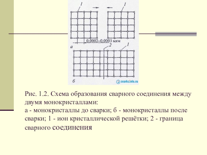 Слайд 8Рис. 1.2. Схема образования сварного соединения между двумя монокристаллами: